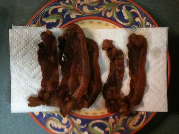 Cuando bacon se hace poner en un plato cubierto con una toalla de papel.