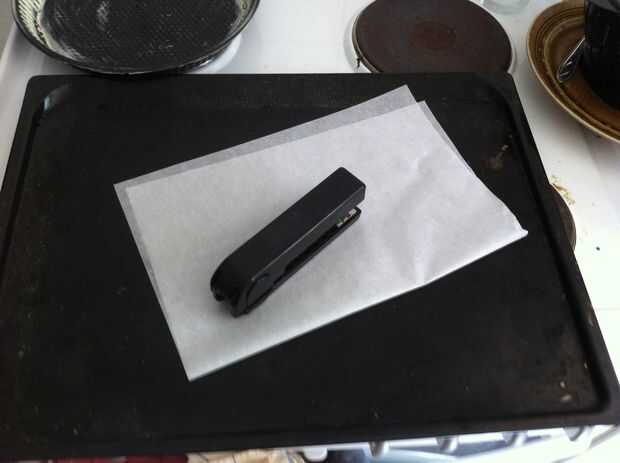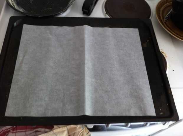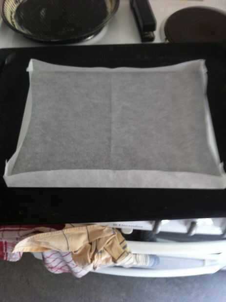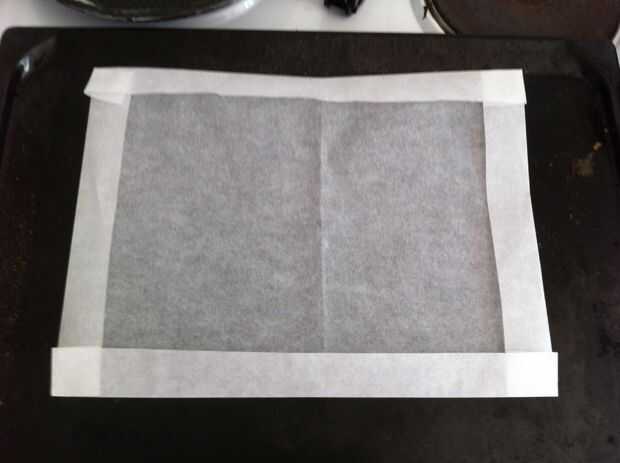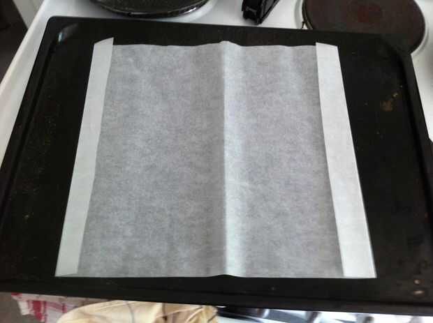 Hacer un formulario para su masa de pastel de una hoja de galleta por plegado y grapado en una caja abierta poco profunda.
