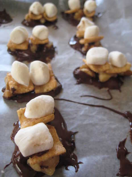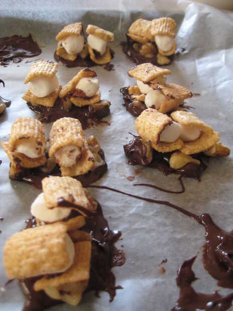 5. Coloque el otro canela tostado Crunch cuadrado encima de cada una de las melcochas.