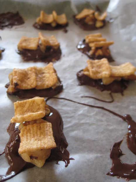 3. Coloque 2 canela tostado Crunch plazas encima las nueces.