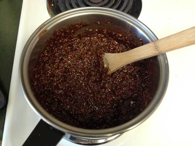 Agregue la avena gradualmente, en incrementos de ½ a 1 taza, revolviendo mientras se agregan. Una vez que se han añadido todos los de la avena, revolver la mezcla hasta que la it se mezcla uniformemente.