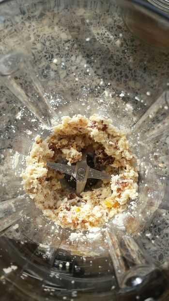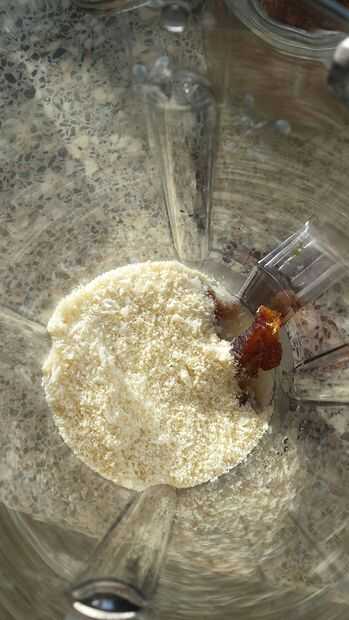 Mezclar las fechas con almondflour.