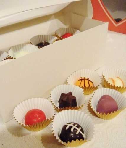 Una vez hechos, puede acabar por pipping en diferentes diseños de chocolate como lo hice para darles personalidad. Luego colocarlos en envoltorios de golosinas y caja para arriba.