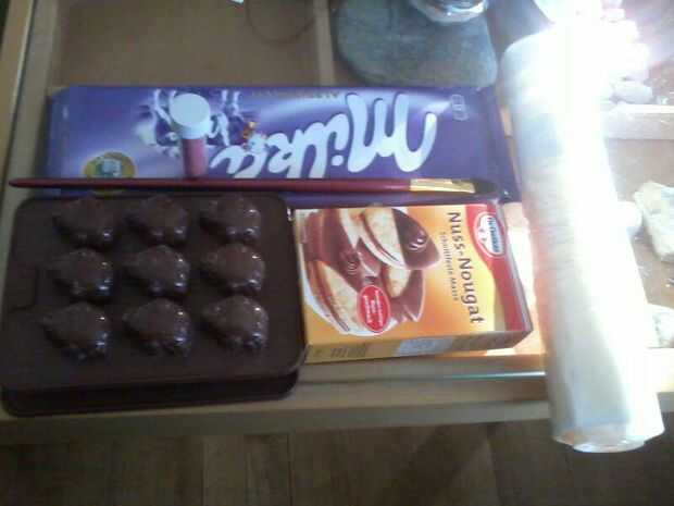 También necesitas algunos moldes de chocolate. Usé mi piggy-los. Si vas para New-año-golosinas, Piggy, trébol, pescado, moneda, Herradura, barrendero de la chimenea, o cualquier otra suerte-encanto-moldes encajaría mejor.