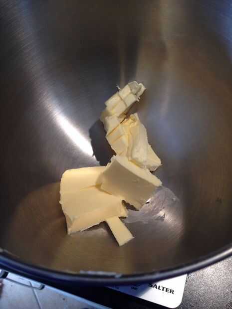 Crema a la mantequilla y el azúcar en una batidora eléctrica. (También puede usar una cuchara de madera o batidora de mano)