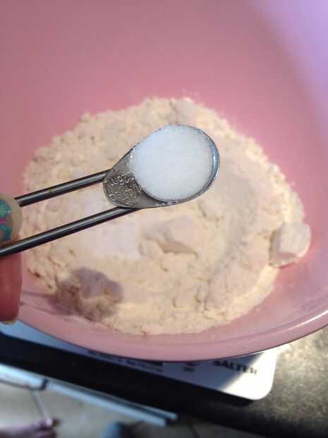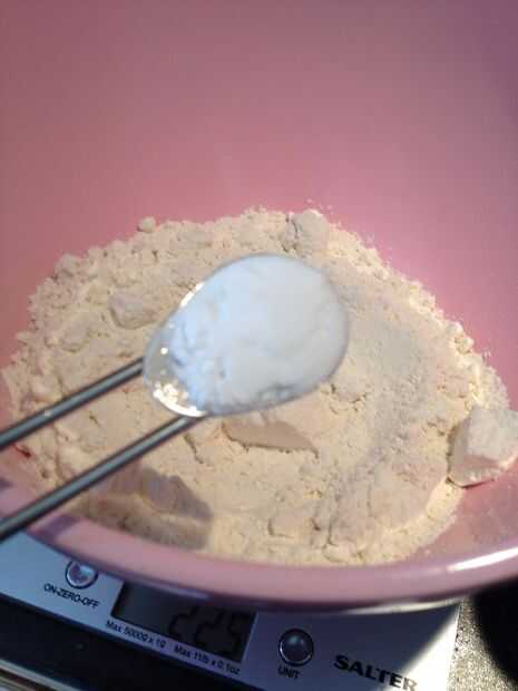 Si su batidora eléctrica está haciendo el trabajo para usted (como es mi madres) puede ordenar a los ingredientes secos. De lo contrario tendrás que hacer este paso una vez que haya terminado de batir la mantequilla y el azúcar.