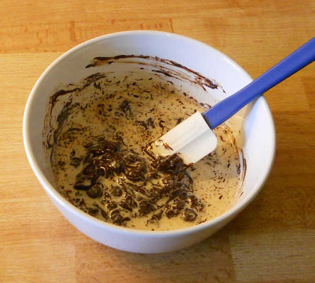 Ingredientes (rendimientos 15 trufas)chocolate blanco de 180g60ml nata2 cucharaditas Disaronnu (o amaretto u otro licor de almendra)180g de oscuro o chocolate con lecheCopos de almendrasPaso 1: Preparar el Chocolate blancoComience calentando la crema