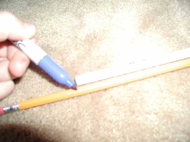 2. PRESTE ATENCIÓN! llevar dos lápices y los ponen al lado de su pluma sin montar y marcarlas (fotos 2 y 3)