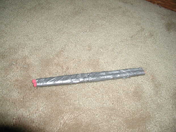 después de haber terminado este paso que usted tendrá 1 juego de dos lápices envuelto en cinta del pato y otro juego más corto de 2 lápices envuelto en cinta adhesiva