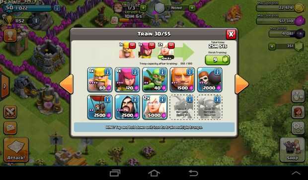 Bueno tu ejército es la parte más importante de su estrategia de granja, la mayoría de los agricultores tiene un gran ejército de bárbaros de lvl alto o arqueros. Pero solo tengo lvl 4 bárbaros y lvl 3 arqueros. También mi Ejército puede penetrar profundamente en desroying base del enemigo todo, así que aquí está. Mi Ejército consiste en 6 lvl 3 asistentes, 10 lvl 3 gigantes, bárbaros de lvl 4 33, 33 lvl 3 arqueros y 6 wallbreakers de lvl 3, que representa 180 tropas, también utilizo 2 lvl 3 rayos hechizos para sacar esos molestos morteros. Construir su ejército a lo que adapta a sus necesidades y tamaño.