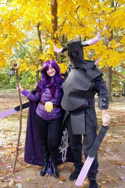 La capa y la peluca eran bastante fáciles, y los cráneos de "charretera" y correa de hombro eran bastante fáciles en comparación con la armadura PEKKA, pero luego llegaron el personal... Por alguna razón impía, nadie vende calaveras de chivo de juguete en internet... Que te venden un esqueleto real de cabra pero no una calavera de luz de juguete. Estábamos cerca de ordenar una impresión 3D personalizada de uno cuando finalmente encontramos una tienda de Halloween que ha vendido un plástico, así que suerte hacia fuera. Después de alguna pintura de oro para los cuernos, un par más LED ojos y viaje a los bosques cercanos para una rama grande (luego lija y un montón de pegamento), el personal también era listo con sólo un par de días restantes antes de Halloween.