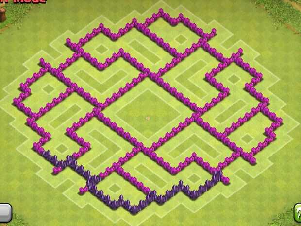 Primero que tienes que colocar abajo los muros, si sigues la imagen correctamente que funciona hacia fuera con una pared extra y usted puede poner eso en cualquier lugar que desee. Esta base sólo funcionará con TH8. He lv 7 y 8 las paredes pero no cualquier nivel.