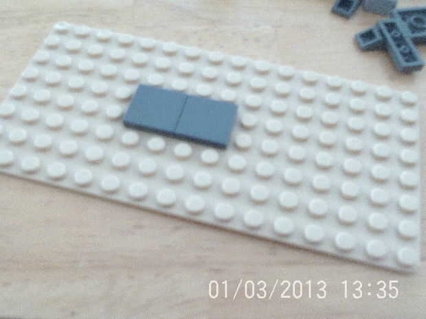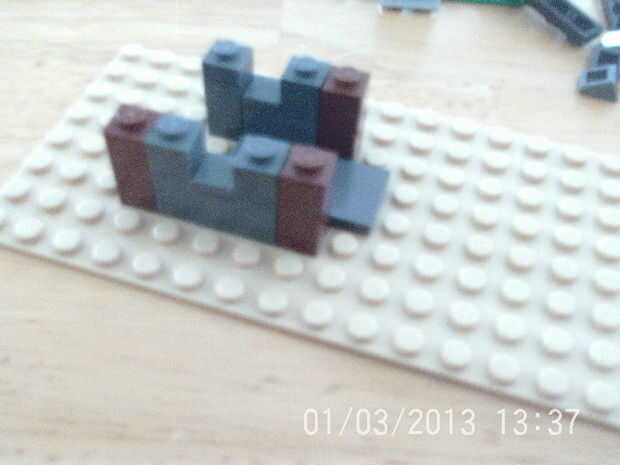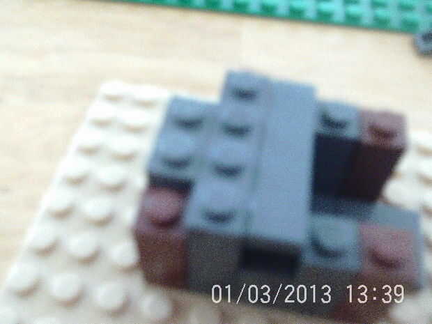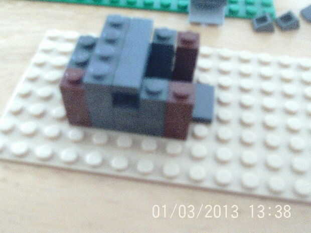 OK así que primera apertura con los azulejos. Trabajar en las paredes. al llegar a la ventana hay un baldosín 1 x 1 (por eso su liso). Añadir entonces 1 x 2 gris ladrillos en la parte posterior y rematar con una placa gris de 1 x 2 en la parte superior. y construir la base de la cubierta.