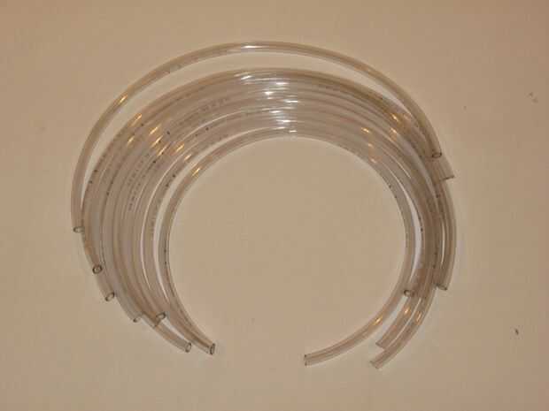 Tomar los 16 pies de tubo de goma y cortar en ocho segmentos, dos pies un pedazo. Es probable que tengan una tendencia a rizarse en sí mismos como lo hacen en la imagen, pero esto realmente le dará al producto final una mirada sorprendentemente orgánica, silvestre.