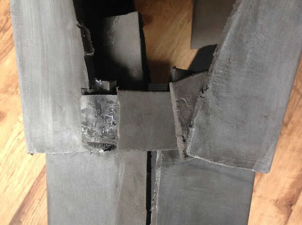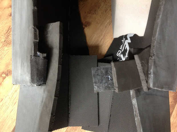 Ocurrió entonces corte una estera de espuma EVA completada por la mitad hacer ejercicio para esta parte del traje haciendo piezas frontales y traseros de la parte inferior del cuerpo.