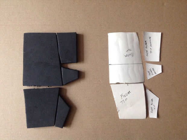 Cortar las plantillas de lugar, encima de una estera de espuma EVA, marcar con el rotulador y cortar con cuchillo.