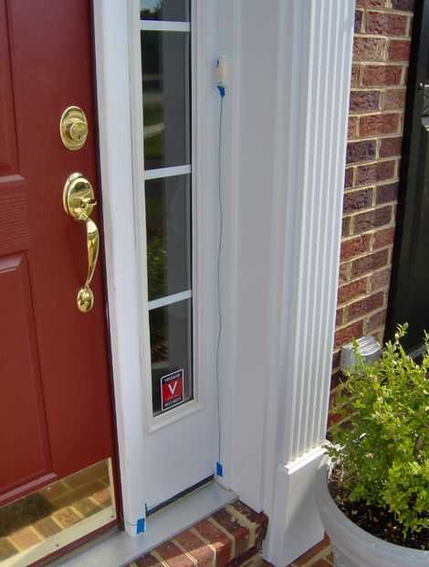 Pase los cables a lo largo del marco de la puerta, cinta adhesiva cuando sea necesario, hasta que estén dentro de la casa. Asegúrese de que los cables no se dentro de 1/2"(1cm) de cada uno.