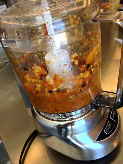 Mezclar los pimientos en un procesador de alimentos con el ajo y una 1/2 taza de agua o caldo y algún perejil y pajote para arriba tan finamente como sea posible. Añadir sal al gusto. Vierta en una cacerola y cocinar durante 5-10 minutos. Si quieres una salsa gruesa y rústica, utilizarlo como es. Si prefieres una salsa más refinada (como hago) ponerlo a través de un filtro, el líquido y desechar los sólidos.