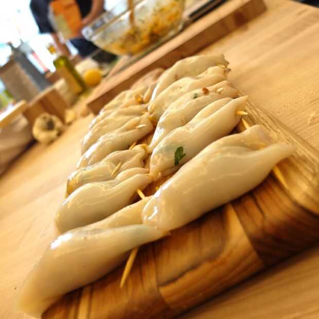 Enjuague su calamar y empezarles relleno a mano. La materia no es más que 3/4 lleno y cerrar el lado abierto del cada calamar con un palillo de dientes. Relleno estos chipirones puede tipo de causar problemas, pues aclare sus calamares rellenos y hacerlos bastante después de su relleno hecho a todos. Colocarlas en una toalla de papel o placa y tenerlos todos alineados para freír.