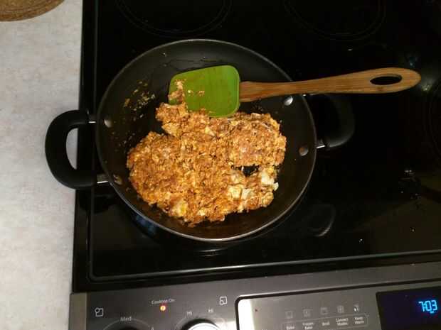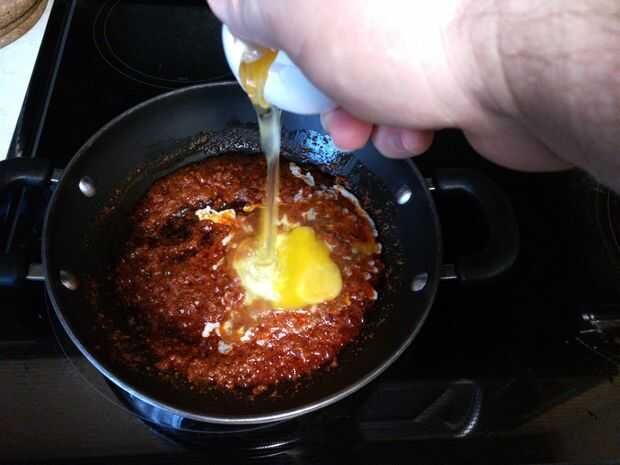 Romper los huevos en el Chorizo y mezclarlo todo bien,
