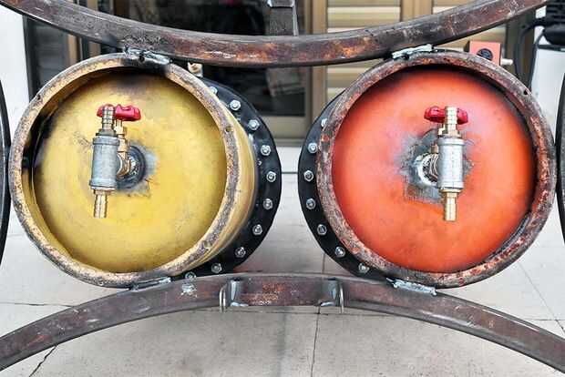 Las indicaciones con respecto a la presión aplicada en nuestros tanques se demostraron por dos medidores de presión que cada uno se coloca por un tanque. También, para cuestiones de seguridad, colocamos dos válvulas de aire de seguridad 12 bar en nuestros tanques así como dos válvulas de escape que saque el aire de los tanques cuando es necesario.