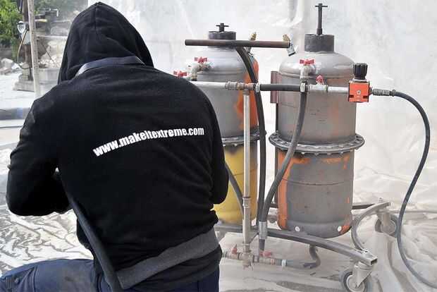 Llegar a presiones de 8 bar de nuestro compresor, nuestras bravatas arena funciona muy bien y tiene excelentes resultados. También, poner el agua en nuestros tanques, podemos limpiar nuestro lugar de suciedad que no puede eliminarse fácilmente con la presión del agua en nuestro hogar. Además, poner un poco de arena en uno de los dos tanques de agua en el otro podemos transformar nuestra estructura en un arenador de la arena de hydro en ningún momento...