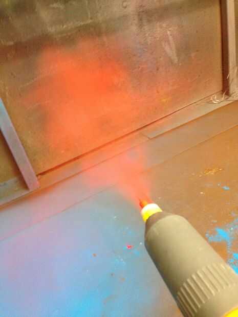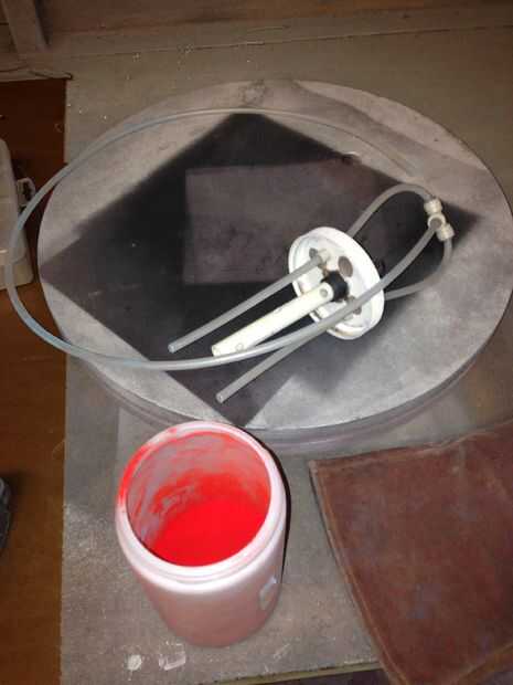Ahora recuperar la pieza del horno y colgarla en la barra de hierro (que está conectado a tierra) con los ganchos de metal (que se llevan a cabo).