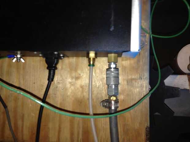Encender el equipo. Establece la potencia en cerca de 40 kv y la presión del aire a aproximadamente 3 psi - ajustan el regulador hasta obtener una agradable luz niebla.