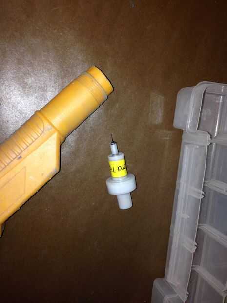 Elegir la boquilla que vas a usar (yo usé la boquilla estándar, ya que mi pieza no era demasiado grande) y fijar el arma y luego la abrazadera al final pedazo sobre la boquilla para asegurarlo.