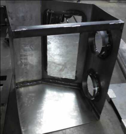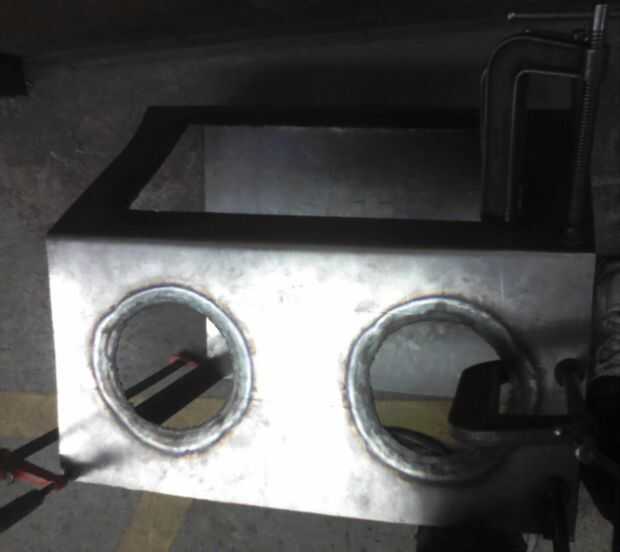 A continuación tuve que soldar con autógena los anillos guantes en el interior de la caja, alrededor de los orificios del guante. Para ello uno de los extremos del aro y anillo en el borde del agujero con tachuelas y entonces trabajado mi manera alrededor del agujero, virando el anillo cada dos pulgadas o así y entonces acabado lo con continua del grano todo el camino alrededor.