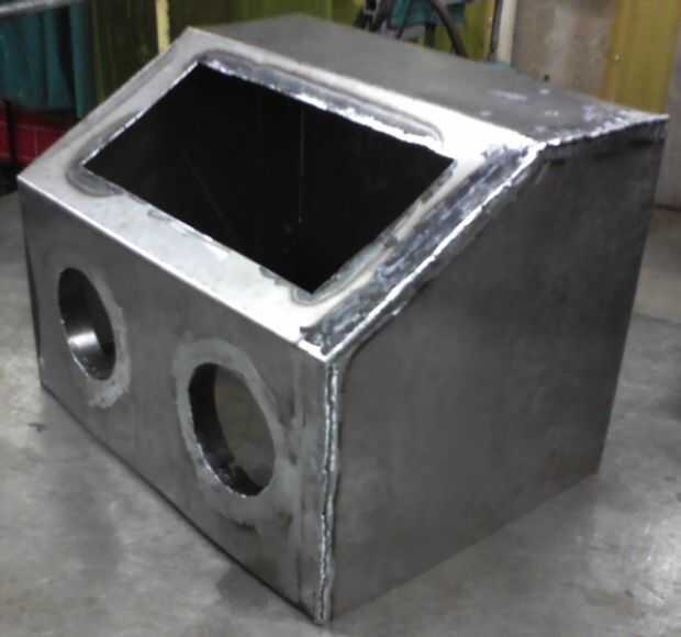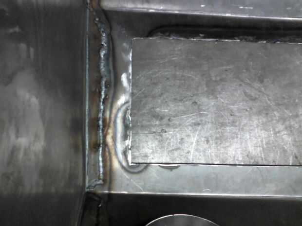 La soldadura que hice fue usar un soldador MIG portátil. Mi experiencia con soldadura es algo limitada por lo que, como mencioné antes, trató de reducir la cantidad total de la soldadura requerida para este proyecto. La soldadura que me fue sellar los lugares donde se unieron los bordes de la caja doblada. Las fichas que he creado durante las etapas de corte y plegadoras hecho esta parte mucho más fácil, como hizo posible a los lados juntos y el compromiso extra facilita la soldadura y las soldaduras fuertes. Soldado con autógena en el interior y el exterior de cada borde.