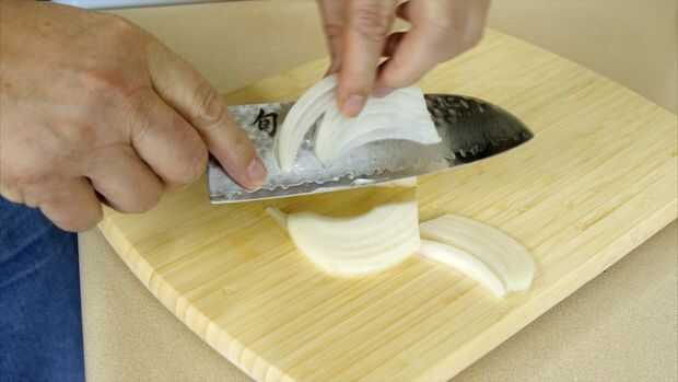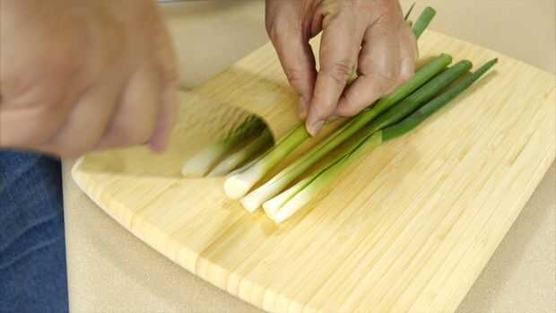 Dividir y trocear cebolla verde 2. Foto muestra tres pero utilizado dos.