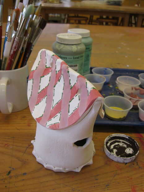 usar underglazes para pintar las decoraciones en su choza de amor.