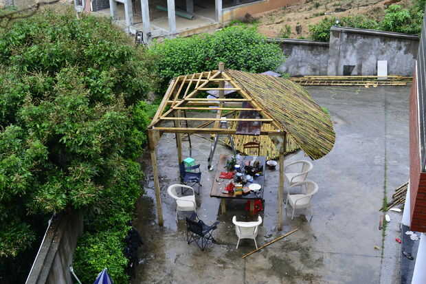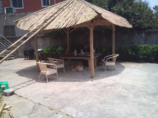 para optimizar el lugar en mi pequeño jardín decido bild hasta mi cabaña/albergue.mi objetivo era proteger el espacio para cocinar y también para parque y proteger todas las herramientas de jardinería y productos.segunda mano utilizo madera para este