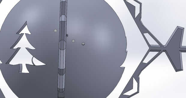 Creo que mi parte favorita de la Navidad es la nieve y el trineo, que representaba con un trineo por un tema de escama de nieve. Si te fijas bien, los cortes en la parte posterior del globo son una escena invernal en un bosque.