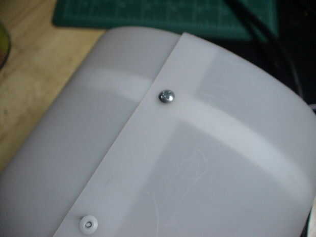 - Ponga un tornillo de temporal en los agujeros que se perforaron para unir el plástico