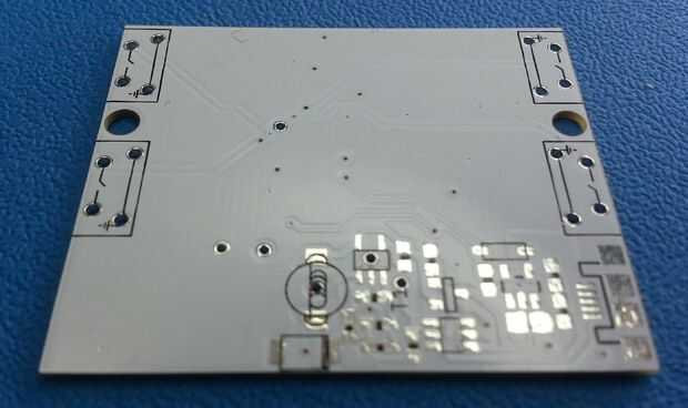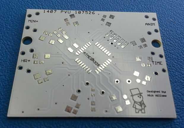 Utilizando la herramienta de procesador de CAM del águila, exportan el diseño a archivos Gerber, pedí cinco tableros con un blanco de la máscara de Seeedstudio fusión PCB [1] servicio de soldadura. Las tablas son sólo de 0,8 mm de espesor.
