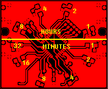 El diseño del reloj está configurado en un arreglo circular de 10 LEDs. Cuatro de los LEDs representan las horas y seis de la cuenta de LEDs de los minutos. Los LEDs cuentan en binario para mostrar la hora en la esfera del reloj.