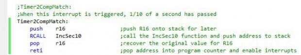El módulo del Timer2 de 8 bits está programado para contar 10ths de segundo asincrónica del sistema. Cuando cuentas un 10 de un segundo interrumpe y aumenta el 10 de un segundo valor.