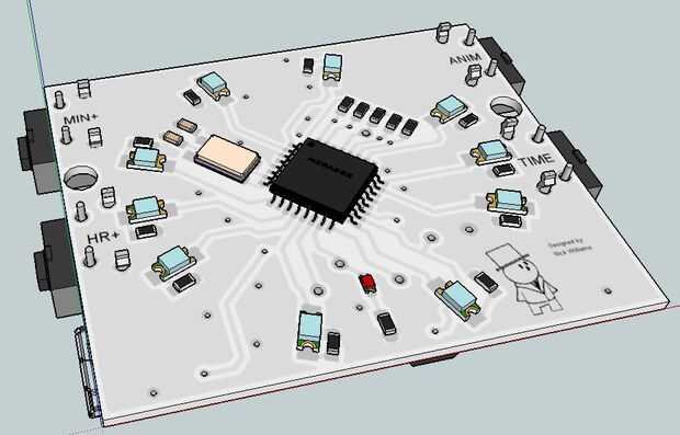Quería construir un recinto caso reloj alrededor de la Junta, por lo que tener un tablero virtual diseñado efectivamente me permitiría asegurar que la caja del reloj tiene las tolerancias más apretadas y más precisas posible. Modelado de la Junta también Cruz verifican la exactitud del cableado y el diseño de la Junta contra el ICs virtuales, condensadores, resistencias y etc.. Viendo que los componentes modelados encajan en el tablero modelado me dio la confianza que el diseño era correcto.