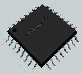 Tienes para el diseño de muchos de sus propios componentes, que pueden llegar a ser tediosos rápidamente. El resultado, sin embargo merece la pena. Se muestra a continuación es el chip de ATmega328P que diseñé en SketchUp: