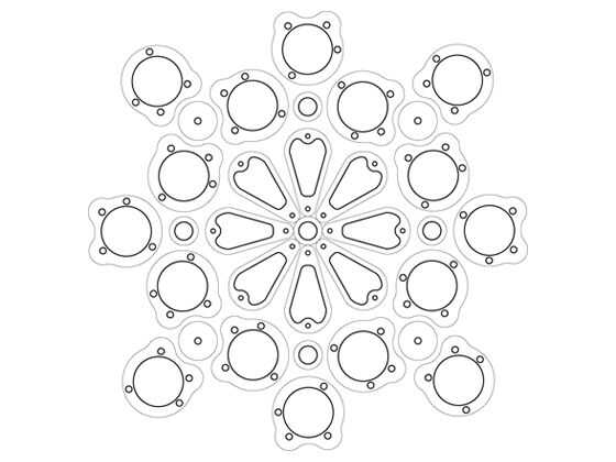Usando la computadora y programas como AutoCAD y Adobe Illustrator, he podido rastrear, girar, escala y combinar las juntas en un patrón que encontré atractivo. En este patrón se puede ver que las líneas tienen diferentes pesos o grueso; Esto determina qué intensidad cortará el cortador del laser. La más ligera la línea, la menor intensidad del laser. En este caso sólo se marcaron las líneas de luz, mientras que las líneas pesadas se cortaron completamente a través de.