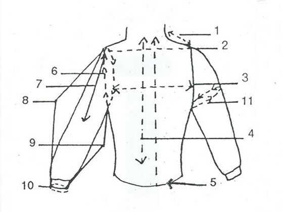 Usted necesitará medir su busto, tórax, cintura y caderas así como los siguientes como se muestra en el siguiente diagrama: