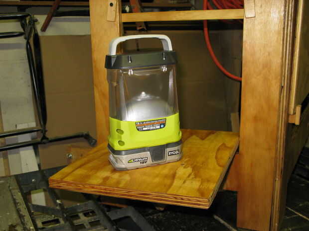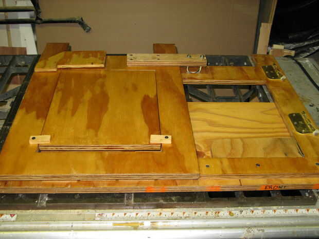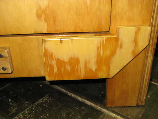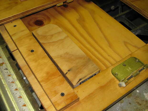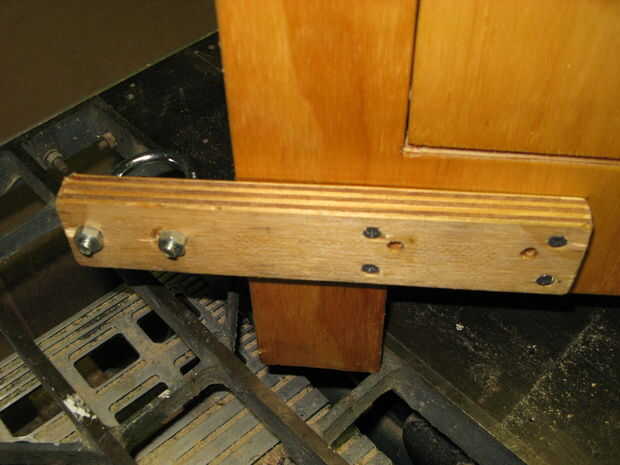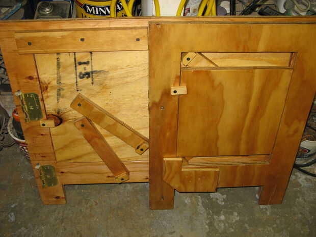 Doblan hacia fuera estantes: Los recortes fueron reutilizados y montados con pasadores como bisagras ocultas. Extraiga el soporte añadido.