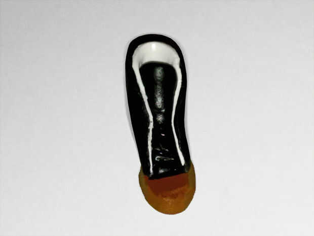 Con su color del zapato (en este caso su negro), forma un pedazo de lengua y adjúntelo a la planta del pie (como se muestra en las imágenes) por lo que cabe a la puntera.