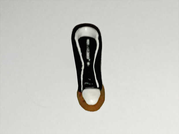Alrededor de los lados de la suela es una negro raya diplomática. Fabricación de que esta pieza es un poco difícil, pero bien vale la pena el detalle. Simplemente Mida las 2 longitudes que necesitará (por ambos lados) y rodillo un rectángulo fino de barro negro y recorte por lo que es su muy estrecha (vea las imágenes). Colocar esta pieza era un poco de un dolor, pero he encontrado rodando libremente alrededor de un palillo de dientes ayudó en conseguir este pequeño detalle en su lugar.