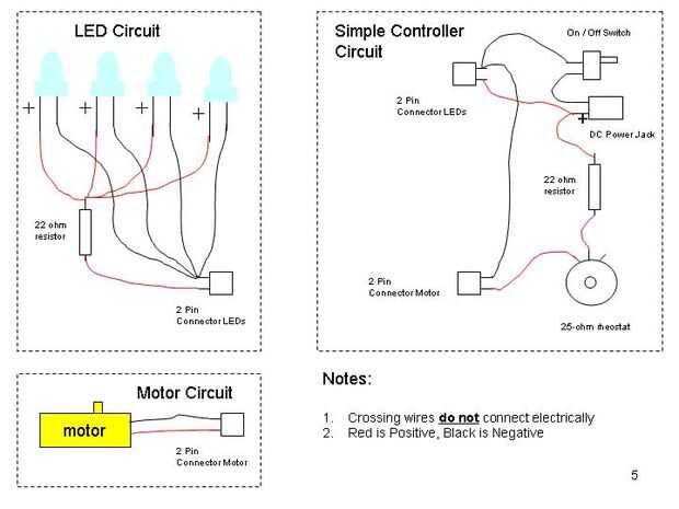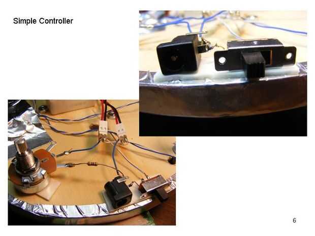 2. soldar entre sí el interruptor de encendido/apagado, resistencia de 22 ohm, reóstato de 25-ohm, conector de alimentación DC y parte masculina de los conectores del motor y conducidos por el diagrama del circuito. La parte más importante es la elaboración de la polaridad correcta.