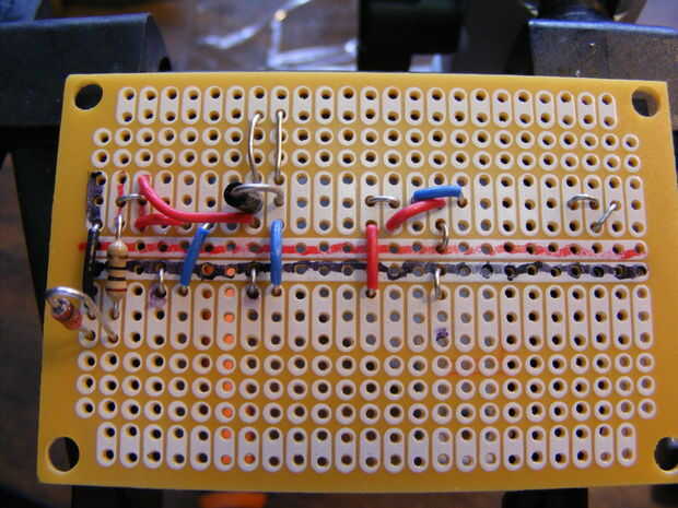 El tablero de adaptador del mini soldadura pad localizaciones son las conservas eran las patas del IC Unidas, por lo que no era tan difícil soldar como pensé. Sin embargo, el adaptador es tan amplio que yo soldar algunos cables de puente bajo para ayudar a ahorrar espacio.