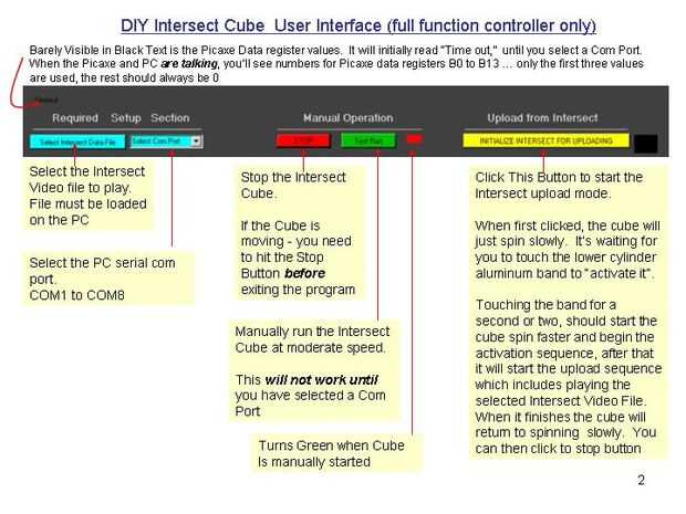 Cuando hace clic en primer lugar, el cubo que gira lentamente. Espera que toque la banda de aluminio cilindro inferior para "activarlo". Tocando la banda durante un segundo o dos, debe iniciar el cubo hace girar más rápidamente y comenzar la secuencia de activación, después de eso él iniciará la secuencia de carga que incluye reproducir archivo seleccionado de Video se cruzan en modo de pantalla completa. Cuando termine, el cubo regresará a girar lentamente. Luego puede hacer clic a botón de parada.