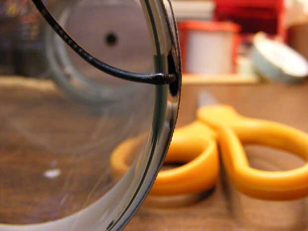 Finalmente, sujetar la banda a botella usando el palillo doble como hizo con la banda superior y la superposición de la cinta hacia abajo con cinta de aluminio.